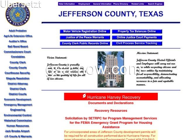 Jefferson County, Texas-Startseite - Jefferson County, Texas-Startseite. Access Gericht Tagesordnungen, Profile und Laufzettel, Telefonbuch, Geschichte, Bibliothek, Dienstleistungen, Gesundheitswesen, Registrierung der Wähler, County Clerk, Bezirks-Sachbearbeiter, Anmeldegebühren und Beschäftigungsmöglichkeiten.
