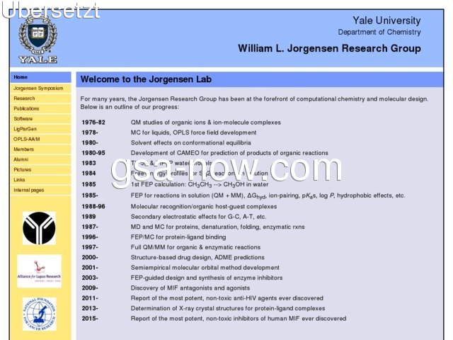 William L. Jorgensen Research Group - herzlich Willkommen auf der Jorgensen-Labor - Untersuchungen von organischen Reaktionen in Lösung und in der Enzyme mit Hilfe von Monte-Carlo und semiempirical QM/MM-Simulationen. (Yale University)